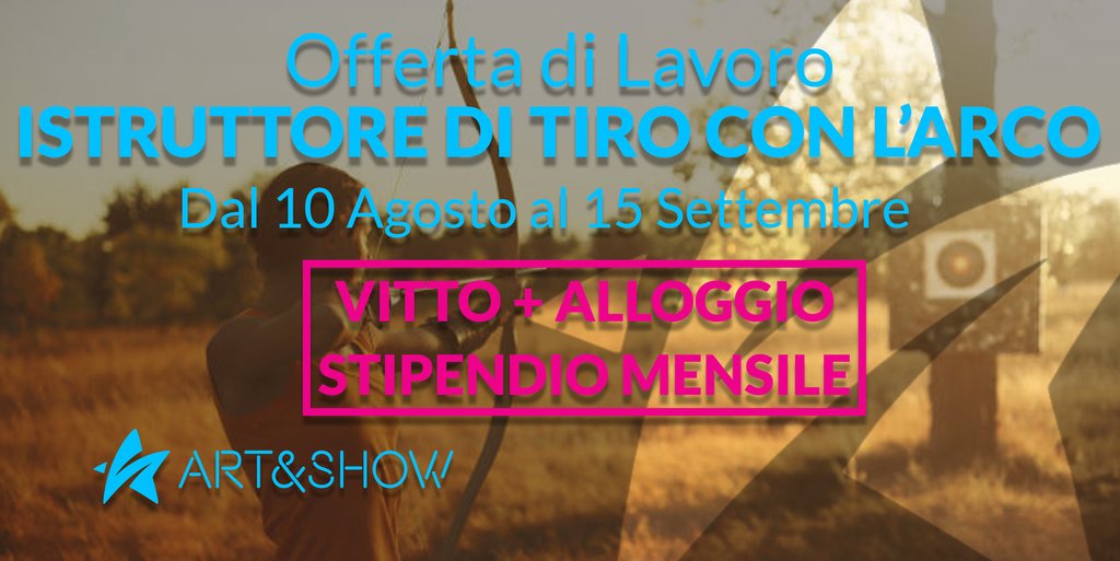 Stiamo Ricercando un Istruttore di Tiro con l'Arco da inserire nel Nostro Team di Animazione, all'interno di uno splendido villaggio Turistico a Lazise (VR). Fatevi avanti!