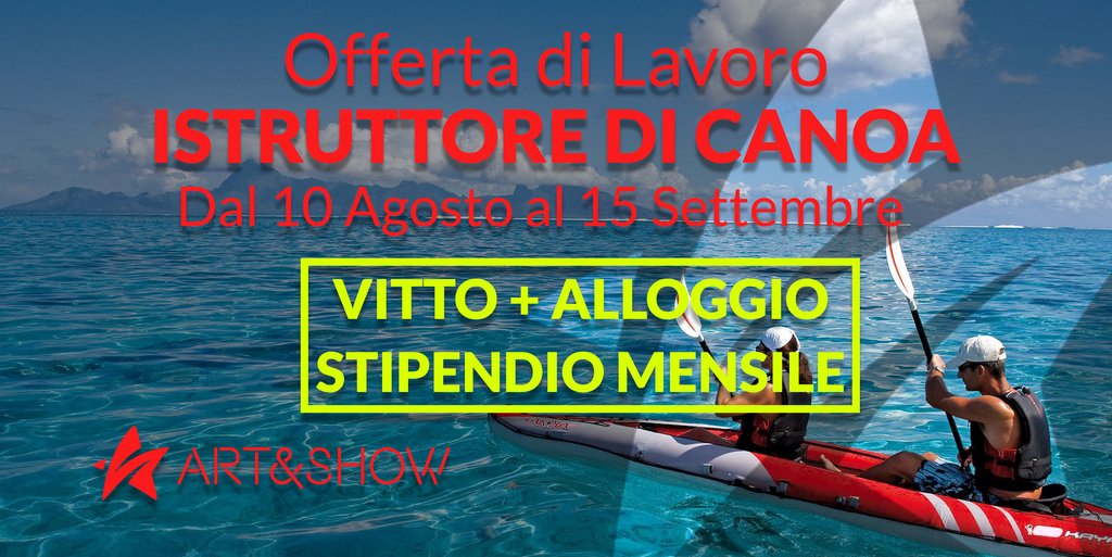 Stiamo Ricercando un Istruttore di Canoa da inserire nel Nostro Team di Animazione, all'interno di uno splendido villaggio Turistico a Lazise (VR). Fatevi avanti!