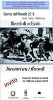 Dove sei: Homepage > Tempo libero > Notizie Tempo libero > GIORNO DEL RICORDO 2016 - Iniziative e incontri tra il 6 febbraio e il 2 marzo