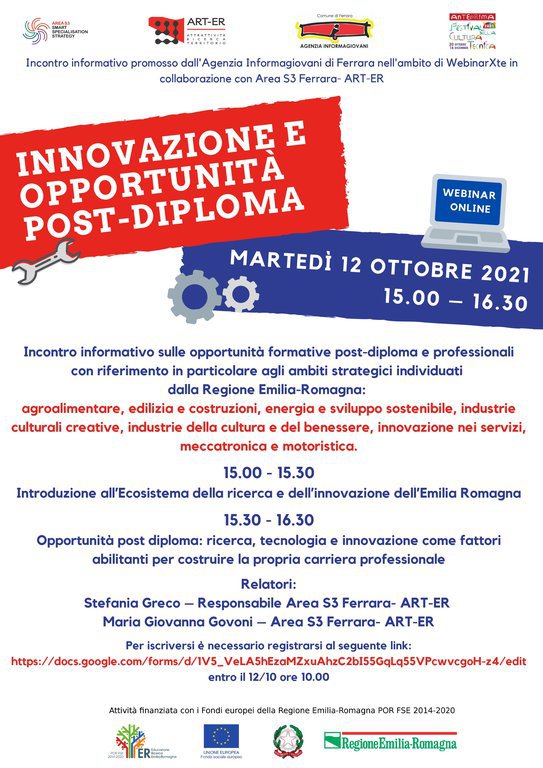 Incontro informativo sulle opportunità formative post-diploma e professionali con riferimento in particolare agli ambiti strategici individuati dalla Regione Emilia-Romagna: