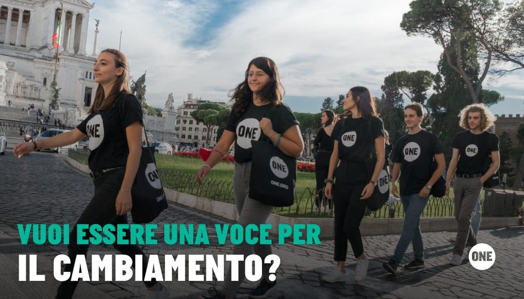 ONE ha una rete di attivistə, chiamatə Global Activist, in Africa, Stati Uniti, Europa e Canada, impegnatə a combattere contro la povertà estrema e le malattie prevenibili. In Europa, il programma ONE Youth Ambassador è un programma di volontariato annuale, in Italia alla sua nona edizione, e stiamo cercando attivistə entusiastə ed appassionatə che si uniscano a noi per tutto il 2022.