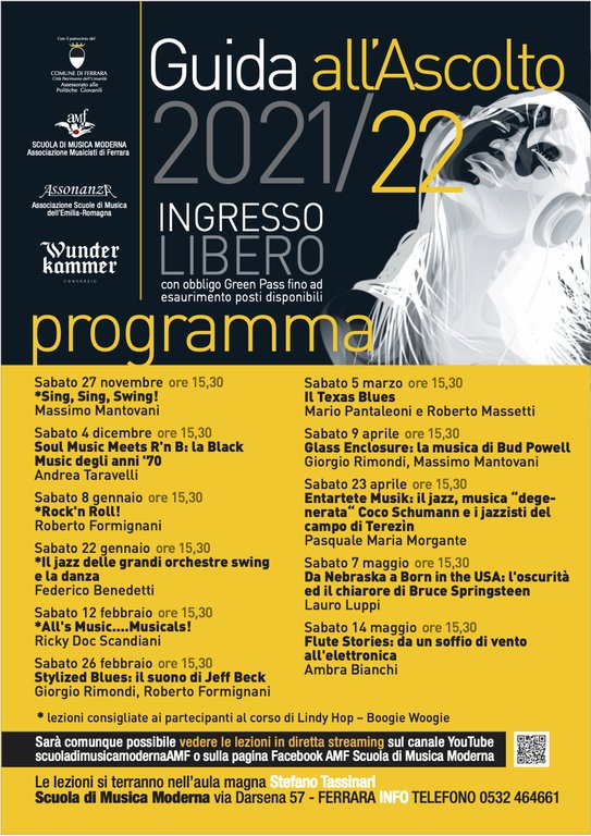 Anche quest'anno l'Associazione Musicisti di Ferrara, in collaborazione con il Comune di Ferrara-Assessorato alle Politiche per i Giovan, propone una serie di 29 appuntamenti ad ingresso libero, il sabato sulla musica moderna, la domenica sulla musica classica denominati rispettivamente Guida all'Ascolto eClassica d'Ascolto, il venerdì sarà invece dedicato ai bambini con la nuova Guida all'ascolto per bambini e le presentazioni letterarie Nero su Bianco.