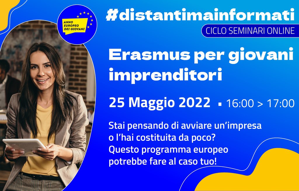 Dove sei: Homepage > Estero > Notizie Estero > #DistantiMaInformati, Webinar per l'utenza 25/05 su Erasmus per giovani imprenditori
