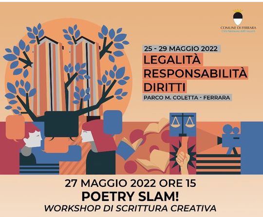 Parola, improvvisazione, scelte tematiche condivise da una comunità non gerarchica libera e temporanea sono alla base della scrittura SLAM. A questi principi si ispira il workshop “Scrittura SLAM, laboratorio di poesia e narrazione per la gestione dei conflitti” organizzato dal Servizio Giovani nella giornata di venerdì 27 maggio, ore 15-19, al Parco Coletta di Ferrara. Il laboratorio si rivolge a studenti, operatori sociali e culturali, insegnanti, educatori, formatori, scrittori, performer, attori… interessati a sperimentare un linguaggio utilizzabile in percorsi di inclusione, conoscenza, socializzazione e aggregazione. A ordinare i lavori sarà Martina Riina esperta di linguaggi espressivi underground e transculturali legati ai contesti del mondo giovanile e della marginalità sociale. Iscrizione è obbligatoria – l.tarroni@comune.fe.it