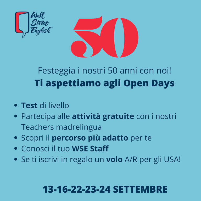 Evento gratuito e posti limitati! Per informazioni e prenotazioni clicca qui: https://www.wallstreet.it/eventi/wse-50-anni-open-days