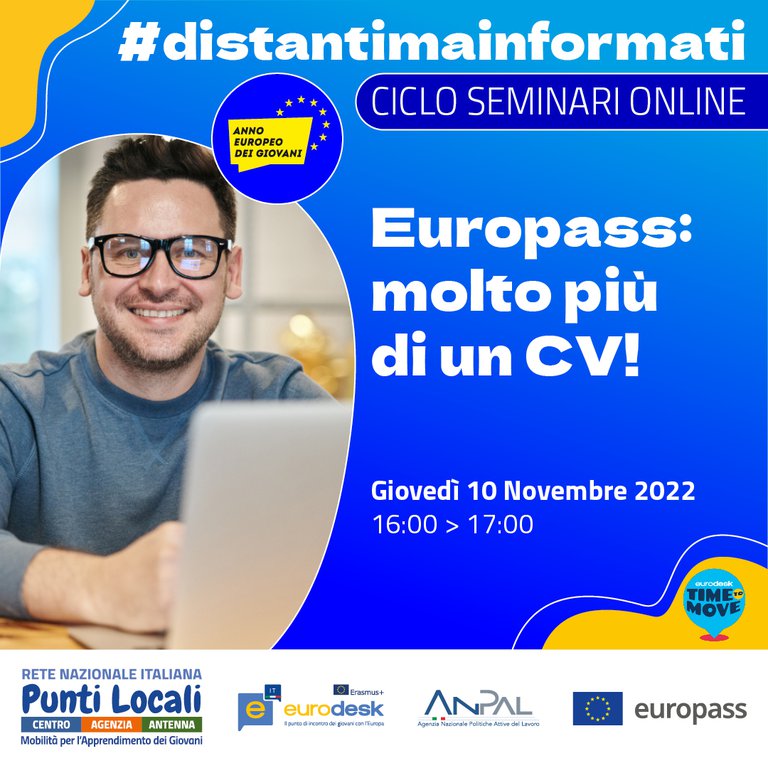 Non perdete il prossimo webinar del ciclo #DistantiMaInformati dal titolo “Europass: molto più di un CV".