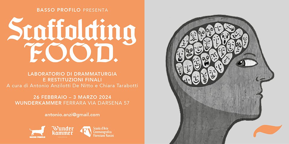 Scaffolding F.O.O.D. è un progetto della nostra consorziata Basso Profilo che si compone di due azioni: una formativa (il laboratorio Stay, dal 26 febbraio all'1 marzo) e una performativa (la rassegna di spettacoli Scaffolding, dall'1 al 3 marzo).