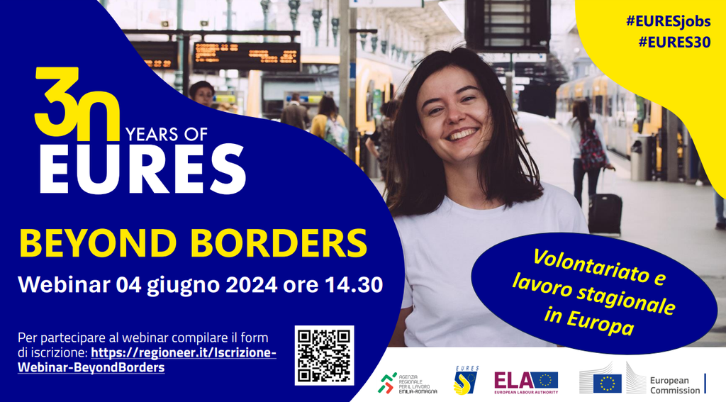 Martedì 4 giugno 2024 (ore 14:30) con i referenti del servizio EURES dei Centri per l'impiego di Parma e Piacenza in programma un seminario online dedicato alle opportunità di mobilità in Europa, con focus su lavoro stagionale e le diverse forme di volontariato