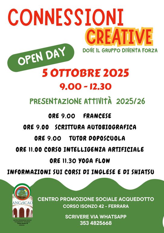 «Il nostro obiettivo – dichiarano i referenti del Centro Sociale Acquedotto – è offrire occasioni di crescita accessibili a tutti, trasformando il quartiere in un luogo vivo, dinamico e aperto al confronto».