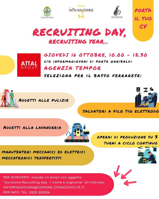 Sarà presente l'agenzia TEMPOR di Attal Group che seleziona per il basso ferrarese le figure di: