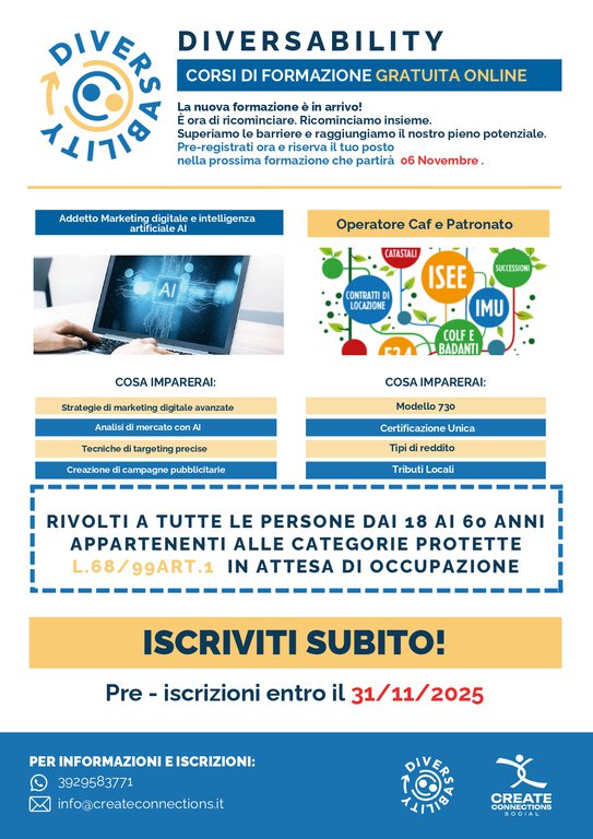 Dove sei: Homepage > Formazione > Notizie Formazione > Corsi di formazione gratuita online - Diversability