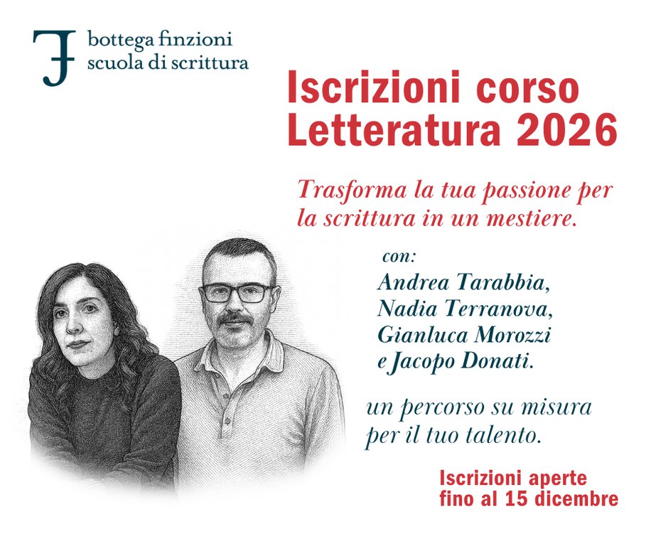 Vi annunciamo che sono aperte le iscrizioni al Corso di Letteratura 2026 della Fondazione Bottega Finzioni – ETS.