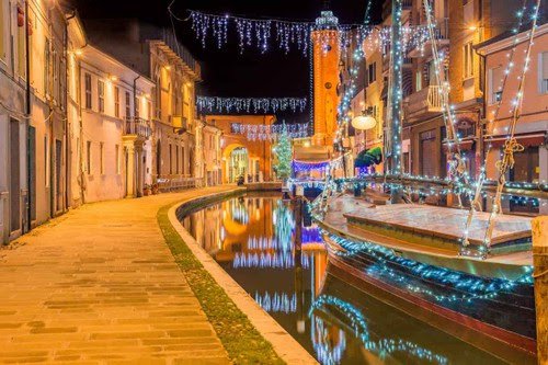 I mercatini natalizi di Comacchio sono uno degli eventi più attesi e suggestivi del periodo natalizio, che animano il cuore della cittadina con un'atmosfera magica e accogliente. Qui è possibile trovare artigianato locale, prodotti tipici, decorazioni natalizie, dolci tradizionali e regali originali. Le luci sfavillanti delle decorazioni natalizie illuminano l'intero borgo, creando un’atmosfera incantata, mentre le melodie delle canzoni natalizie diffondono allegria e spirito di festa: un'ottima opportunità per acquistare souvenir e regalini natalizi. A cura di My Life ASD. in collaborazione con New Input Service e Bagno Battija.