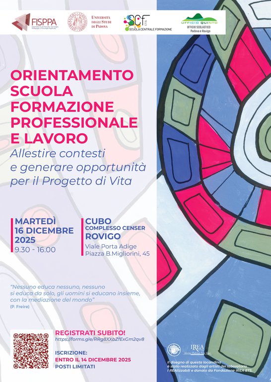 Martedì 16 dicembre 2025, dalle 9.30 alle 16.00, presso il CUBO – Complesso Censer di Rovigo (Viale Porta Adige, Piazza B. Migliorini 45), si terrà una giornata di approfondimento sul tema dell’orientamento e sulla costruzione di contesti educativi capaci di generare opportunità per il Progetto di Vita di ciascuna persona.
