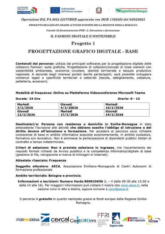 IL FASHION DIGITALE E SOSTENIBILE - Progetto 1 “Progettazione grafico digitale - base”, 24 ore