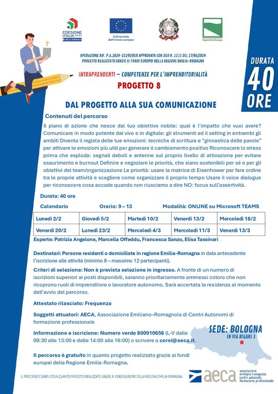 INTRAPRENDENTI – Competenze per l’imprenditorialità - Progetto 8 “Dal progetto alla sua comunicazione”, 40 ore