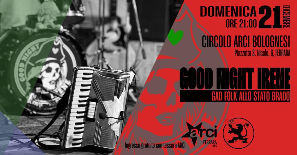 Domenica 21 dicembre 2025 · Circolo Arci Bolognesi · apertura 19:00 · live 21:00