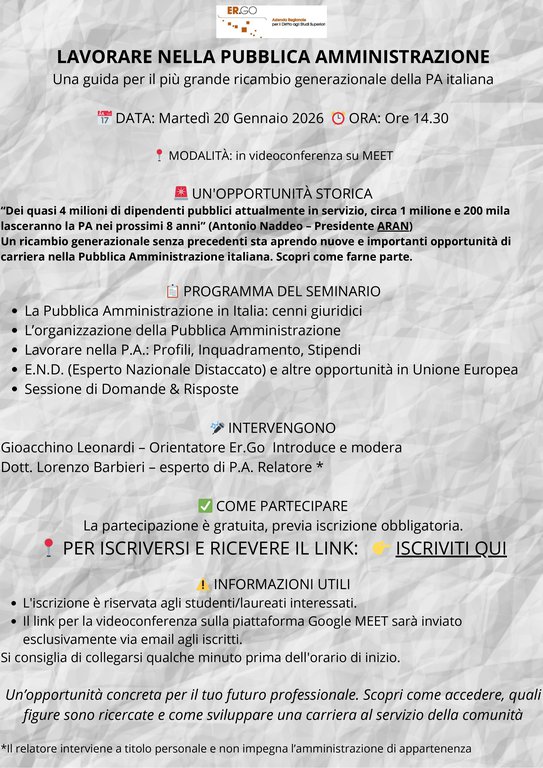 Dove sei: Homepage > Lavoro > Notizie Lavoro > LAVORARE NELLA PUBBLICA AMMINISTRAZIONE - Er.Go