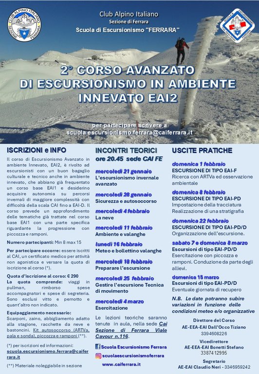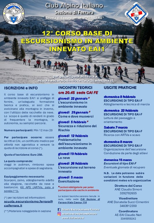Per le iscrizioni e informazioni: scuola.escursionismo.ferrara@caiferrara.it