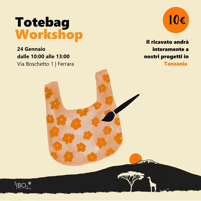 Sabato 24 gennaio ti aspettiamo al “Tanzania totebag workshop”, iniziativa organizzata dai volontari ESC attualmente ospiti a Casa IBO con competenze in belle arti – in collaborazione con AltraQualità, cooperativa di commercio equo e solidale di Ferrara, che metterà gratuitamente a disposizione le proprie borse in tela di cotone colorate.