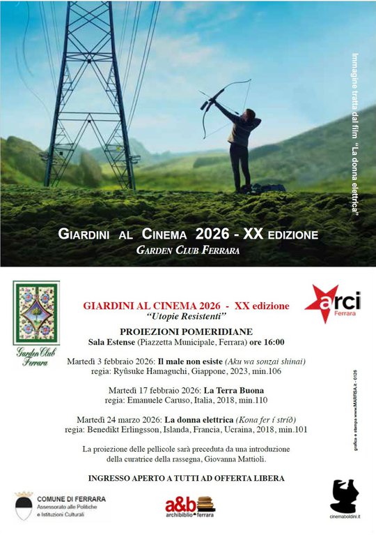 “Giardini al cinema” del Garden Club Ferrara, al via la XX edizione: il tema è “Utopie resistenti” Torna anche nel 2026 la rassegna Giardini al cinema, promossa dal Garden Club Ferrara con il patrocinio del Comune di Ferrara. Quella in programma è la XX edizione, dedicata al tema “Utopie resistenti”, un percorso cinematografico che indaga il difficile equilibrio tra uomo e natura attraverso storie di resistenza, scelte radicali e conflitti con poteri economici e interessi consolidati. La rassegna propone film che raccontano la lotta di personaggi che hanno deciso di schierarsi dalla parte dell’ambiente, consapevoli della complessità – e spesso dell’apparente impossibilità – della loro battaglia. Ogni proiezione sarà preceduta da un’introduzione a cura di Giovanna Mattioli, curatrice dell’iniziativa. Gli incontri sono aperti a tutti, con ingresso a offerta libera. Il primo appuntamento è fissato per martedì 3 febbraio 2026, alle ore 16, presso la Sala Estense, con la proiezione di Il male non esiste (Aku wa sonzai shinai), film del 2023 diretto dal regista giapponese Ryūsuke Hamaguchi, vincitore del Leone d’argento – Gran Premio della Giuria alla Mostra Internazionale d’Arte Cinematografica di Venezia. Un’opera intensa e misteriosa, il film propone una riflessione profonda sugli equilibri e i disequilibri che caratterizzano il rapporto tra l’essere umano e l’ambiente naturale. Hamaguchi, tra i protagonisti del cinema giapponese contemporaneo, accompagna lo spettatore in una natura selvaggia e quasi fiabesca, valorizzata dalle suggestive musiche della compositrice Eiko Ishibashi.