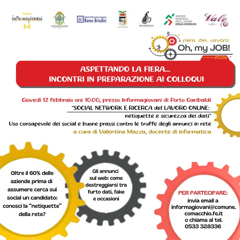 PER PARTECIPARE: la partecipazione è libera ma è preferibile inviare un'email informagiovani@comune.comacchio.fe.it con oggetto "INCONTRO 12 FEBBRAIO + NOME COGNOME"