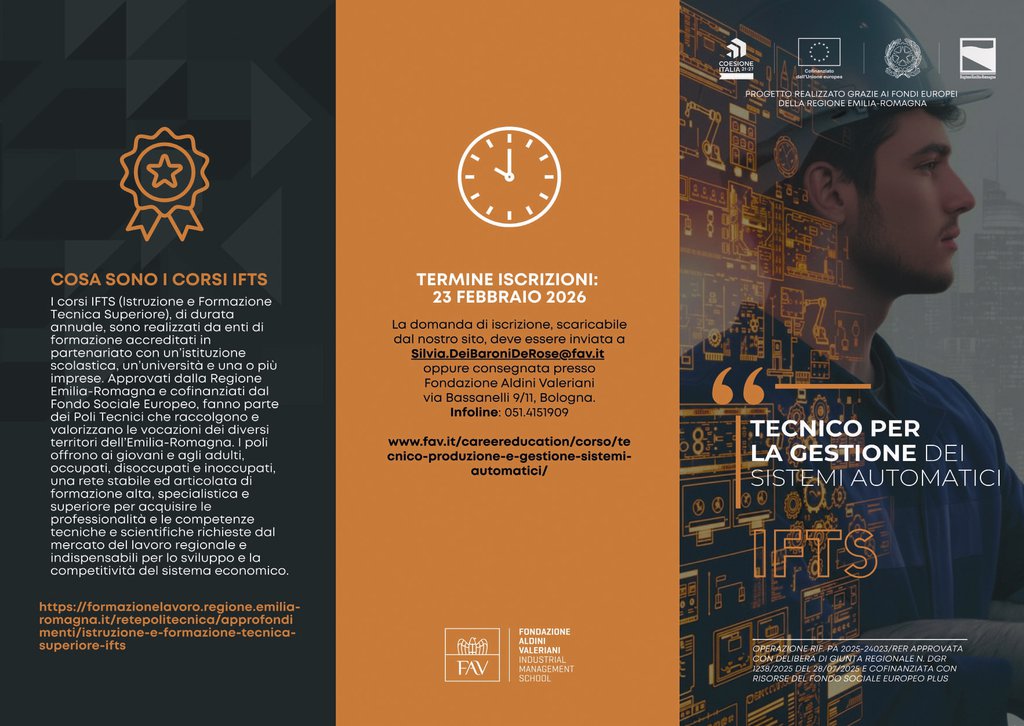 Avvio presso Fondazione Aldini Valeriani di 3 percorsi formativi GRATUITI (Corsi IFTS Istruzione e Formazione tecnica superiore).