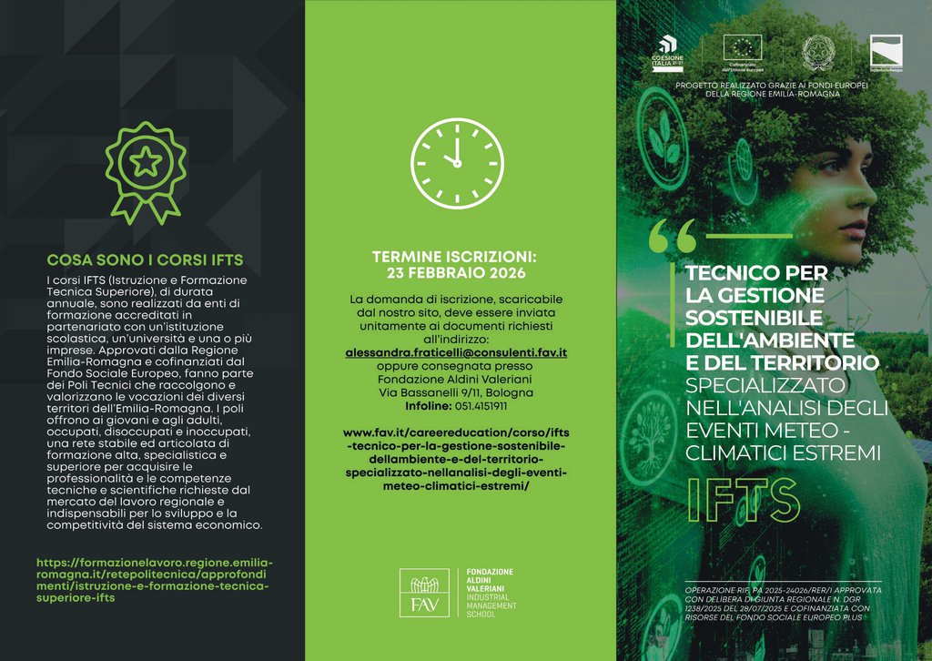 IFTS TECNICO PER LA GESTIONE SOSTENIBILE DELL'AMBIENTE E DEL TERRITORIO SPECIALIZZATO NELL'ANALISI DEGLI EVENTI METEO-CLIMATICI ESTREMI