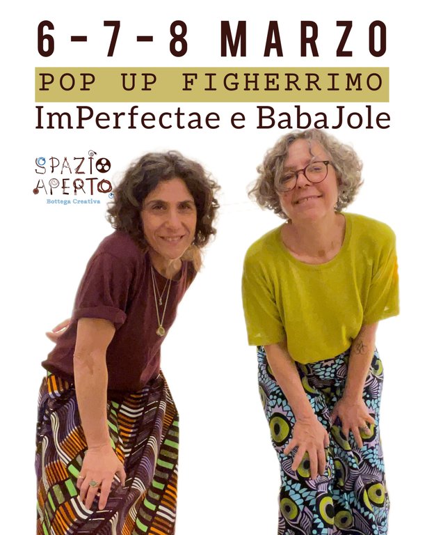 L'associazione di promozione sociale Spazio Aperto Ferrara presenterà venerdì 6 marzo dalle 14 alle 19, sabato 7 marzo dalle 10 alle 19 e domenica 8 marzo dalle 10 alle 14 nei propri spazi di via Carlo Mayr 69 Ferrara il primo popup della stagione 2026 di artigianato d'eccellenza delle imprese femminili ImPerfectae, brand artigianale di maglieria di Laura Pani e BabaJole, brand artigianale di sartoria di Lavinia Busolo.