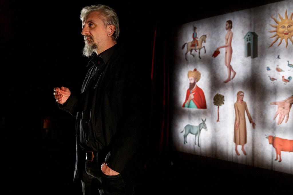 Terzo capitolo di un percorso teatrale avviato con Laika (2015) e Pueblo (2017), con questa nuova creazione Celestini prosegue la propria indagine sulle periferie contemporanee. In scena, accanto all’artista, la fisarmonica di Gianluca Casadei, collaboratore storico dell’artista, la voce di Agata Celestini e le immagini dipinte di Franco Biagioni.