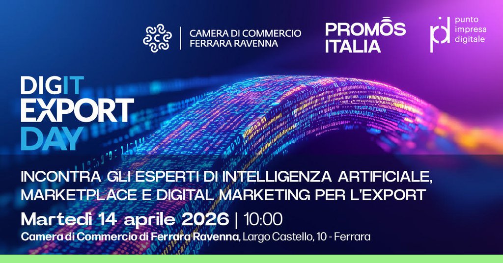 Sarà proprio a Ferrara, il prossimo 14 aprile, la prima tappa del Roadshow “DigIT Export Day”: un’occasione per portare competenze, strumenti e confronto direttamente sul territorio e supportare le PMI, con attenzione anche alle imprese femminili e giovanili, nello sviluppo di strategie digitali efficaci per affrontare i mercati internazionali. L'appuntamento, promosso da Promos Italia, l’Agenzia Nazionale del Sistema Camerale per l’Internazionalizzazione delle Imprese, si svolgerà il 14 aprile dalle 9.00 alle 16.00 nella sede della Camera di commercio di Ferrara Ravenna, in Largo Castello, 10.