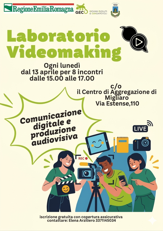 Parte a Migliaro un Laboratorio di Videomaking, un percorso pratico dedicato a chi vuole imparare a raccontare storie attraverso le immagini, utilizzare strumenti digitali e avvicinarsi alla produzione video.