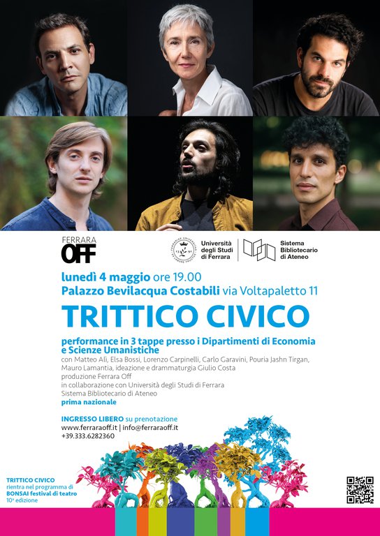 con Matteo Alì, Elsa Bossi, Lorenzo Carpinelli, Carlo Garavini, Pouria Jashn Tirgan, Mauro Lamantia; ideazione e drammaturgia Giulio Costa, produzione Ferrara Off in collaborazione con il Sistema Bibliotecario dell'Università degli Studi di Ferrara