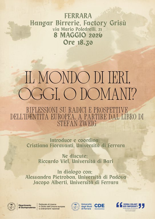 Si terrà giovedì 8 maggio 2026 alle ore 18:30, presso l’Hangar Birrerie, Factory Grisù, l’incontro dal titolo “Il mondo di ieri, oggi, o domani?”, un momento di riflessione dedicato alle radici e alle prospettive dell’identità europea.