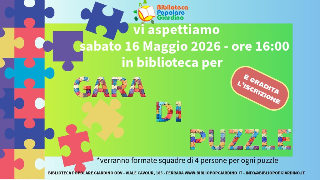 La Biblioteca Popolare Giardino organizza la seconda edizione di PUZZLEMANIA- Gara di Puzzle.