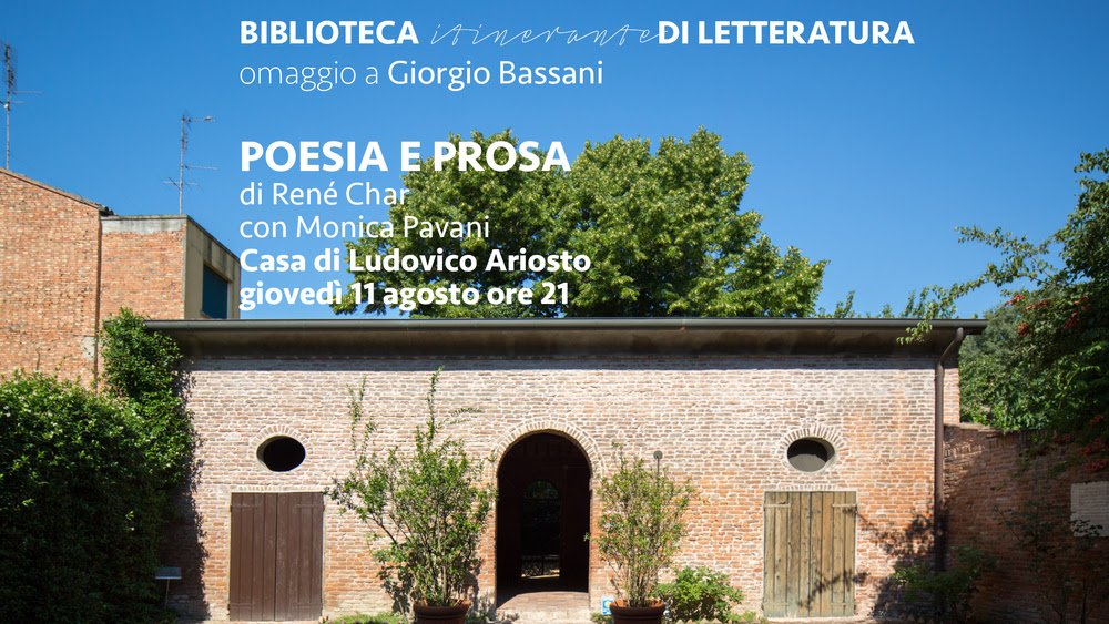 Nell’incantevole cornice della Casa di Ludovico Ariosto, in via Ariosto 67, giovedì 11 agosto alle ore 21 si svolgerà un nuovo appuntamento della ‘Biblioteca itinerante di letteratura’, la rassegna di letture, patrocinata dal Comune di Ferrara e Regione Emilia-Romagna, con cui il Teatro Ferrara Off omaggia, nel centenario della sua nascita, la figura di Giorgio Bassani redattore editoriale e critico letterario.