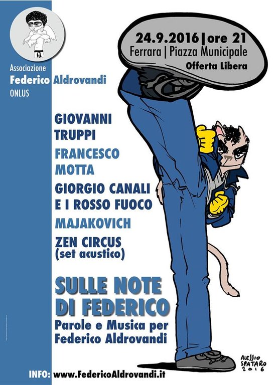 Sabato 24 settembre 2016 alle 21 in piazza Municipale a Ferrara l'associazione Federico Aldrovandi onlus con il patrocinio del Comune di Ferrara, undici anni dopo l'uccisione di Federico, organizza il tradizionale concerto in ricordo di "Aldro" anche quest'anno nel cuore della città.
