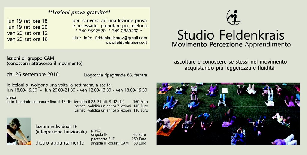 Chi è interessato è pregato di telefonare al 340 9592520 o 349 2889402 oppure di scirverme per mail (con anticipo) feldenkraismov@gmail.com