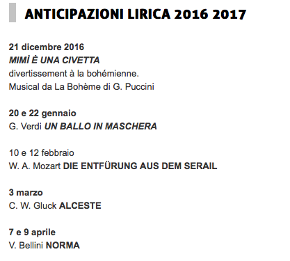 Anticipazione Stagione Lirica 2016-17 presso il Teatro Comunale "Claudio Abbado" di Ferrara in allegato.