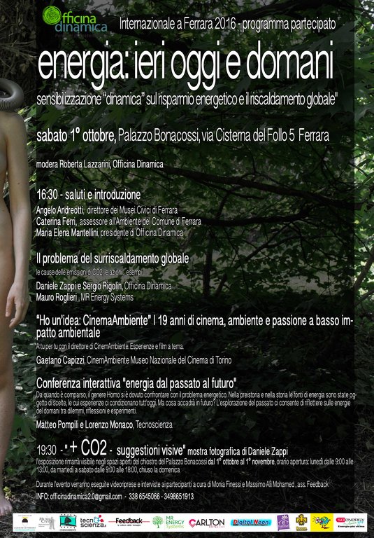 organizzatori: Officina Dinamica (FE) in collaborazione con :Festival CinemAmbiente –Museo Nazionale del Cinema (TO), Tecnoscienza (BO), MR Energy Systems (VE), Feedback (FE)