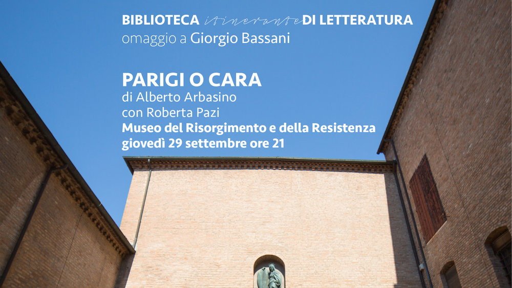 L'aperomix di giovedì sarà seguito dalla lettura di Ferrara Off, alle 21, per il ciclo "Biblioteca itinerante di letteratura". Roberta Pazi interpreterà Parigi o cara di Alberto Arbasino, una penna controversa tanto nella scrittura quanto nel rapporto con Giorgio Bassani, che per primo lo lanciò nel panorama nazionale e che lui poi sconfessò con l'adesione al Gruppo '63.