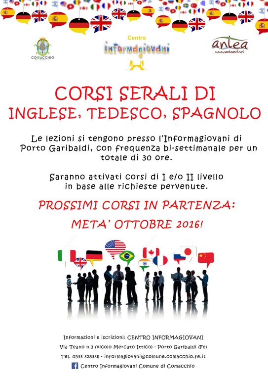 Dove sei: Homepage > Tempo libero > Notizie Tempo libero > Corsi di lingue straniere presso l'Informagiovani di Comacchio