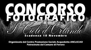 Quando manca un mese alla chiusura, desideriamo segnalare che, in occasione dei 500 anni dalla prima pubblicazione dell’Orlando furioso di Ludovico Ariosto, il Centro di Promozione Sociale Acquedotto ANCeSCAO ha pensato di dare il proprio contributo alle celebrazioni promuovendo un concorso fotografico dal titolo “I Cieli d’Orlando” e ottenendo il Patrocinio del Comune di Ferrara.