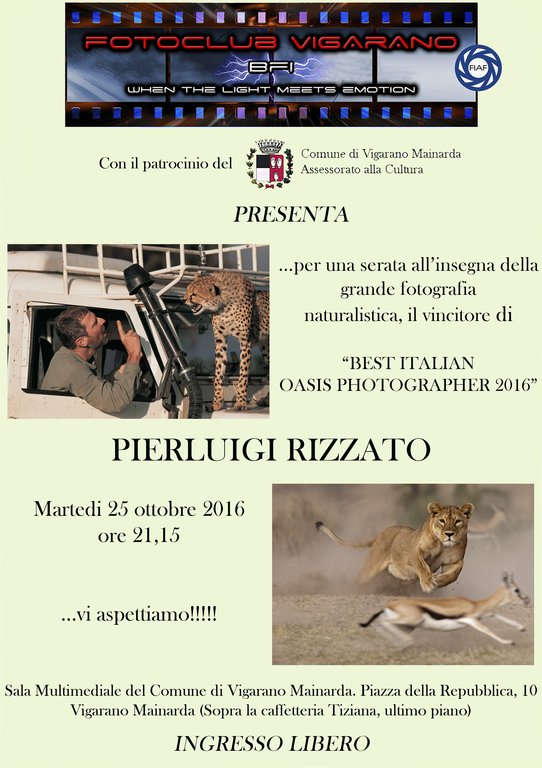serata organizzata dal Fotoclub di Vigarano con Pierligi Rizzato, Fotografo Naturalista, vincitore del'ultimo premio "Best Italian Oasis Photographer 2016".