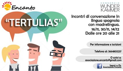 16/11, 30/11, 14/12 dalle ore 20 alle 21: Incontri di conversazione in cui di volta in volta si parla di una tematica diversa sempre in lingua spagnola con madrelingua. Incontri aperti a tutti. Per i nuovi soci riserviamo due incontri gratuiti.