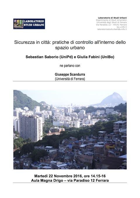 In questo lungo viaggio etnografico siamo partiti da Goro, passati per Milano, Roma e Barcellona e il prossimo martedi 22 novembre, dalle 14.15 alle 16.00 in Aula Magna Drigo del Dipartimento Studi Umanistici (via Paradiso, 12), arriveremo a Rio de Janeiro per poi concludere il nostro viaggio a Bologna.