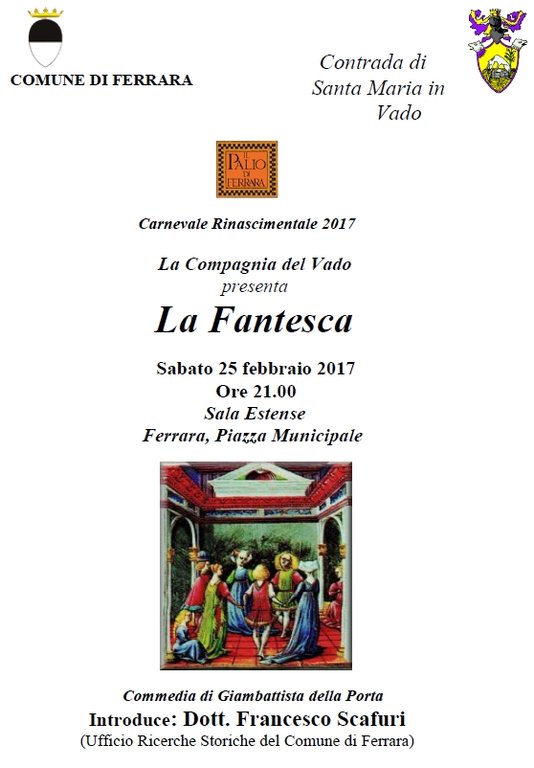 Durante le quattro giornate ufficiali della manifestazione, dal 23 al 26 febbraio, ferraresi e turisti potranno invece scegliere fra: 14 appuntamenti di intrattenimento per bambini (tra merende tematiche, caccia al tesoro, uno spettacolo di burattini, laboratori ludico-didattici); 5 conferenze tematiche; 3 proiezioni gratuite al Cinema Boldini ("E ridendo l'uccise" di Florestano Vancini e "Il Mestiere delle Armi" di Olmi e una proiezione delle famose ottave della Gerusalemme Liberata "Combattimento di Tancredi e Clorinda" del Tasso recitata da attori detenuti nel carcere di Ferrara); 11 visite guidate tematiche; due balli in maschera (venerdì 24 e sabato 25); due banchetti di ispirazione rinascimentale in Castello e a Palazzo Roverella sabato 25, e due pranzi alla Contrada di San Benedetto domenica 26; oltre alla rappresentazione teatrale 'La Fantesca' di Gianbattista Della Porta interpretato dalla Compagnia del Vado alla Sala Estense (il 25 febbraio alle 21).
