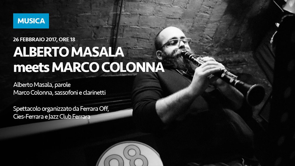 Un duello tra versi poetici e note musicali: domenica 26 febbraio alle ore 18 Ferrara Off ospita un confronto artistico che promette esiti sorprendenti, tra jazz e poesia: Alberto Masala meets Marco Colonna.