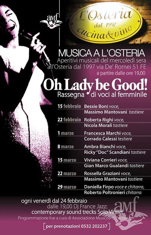 Dove sei: Homepage > Tempo libero > Notizie Tempo libero > Oh Lady Be Good! Musica a L'Osteria in via De Romei 51