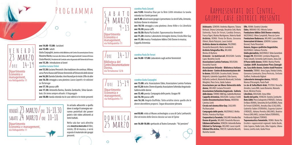 Convegno nazionale che si terrà a Ferrara nei giorni 23, 24 e 25 marzo promosso da Associazione culturale Leggere Donna - Luciana Tufani Editrice e Centro Documentazione Donna di Ferrara in collaborazione con Università di Ferrara e Comune di Ferrara - Assessorato Pari Opportunità.